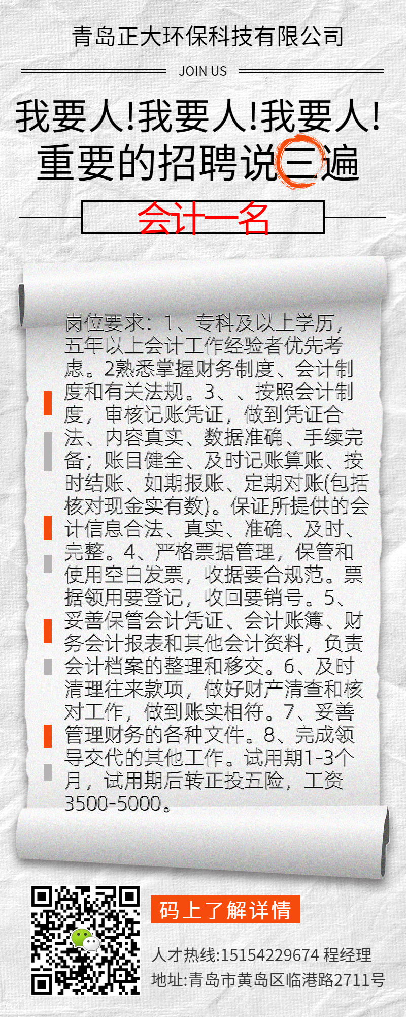 招聘會計一名